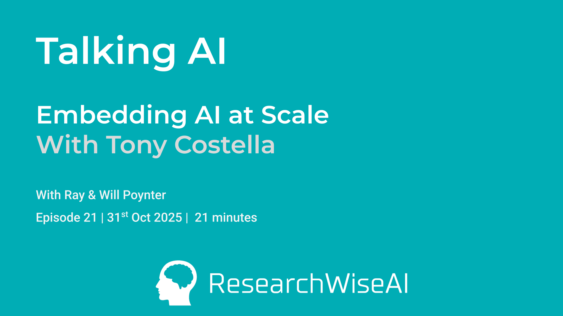 In this Talking AI episode, host Ray Poynter sits down with Tony Costella, Heineken’s Global Commerce AI & Performance Transformation Director, to share a grounded, inside-the-business view of AI transformation. Drawing on a career rooted in insights, Tony explains why this shift isn’t a ‘tools’ story but a people-first change program, captured neatly in the 10/20/70 model: roughly 10% technology, 20% data, and 70% people and process. Listeners will hear how Heineken is: